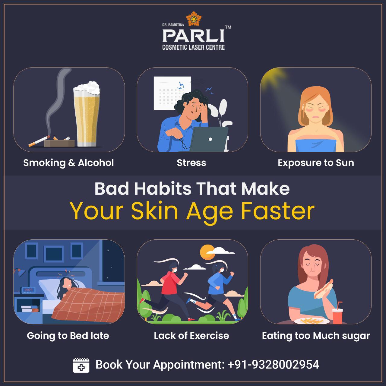 Bad Habits That Make Your Skin Age Faster Skin Treatment In Rajkot hair Loss in rajkot Fue hair in rajkot Fue hair transplant in Rajkot #skincare #beauty #skincareroutine #makeup #skin #skincareproducts #skincaretips #selfcare #dailyhabits #healthyhabits #mentalhealth #glowingskin #antiaging